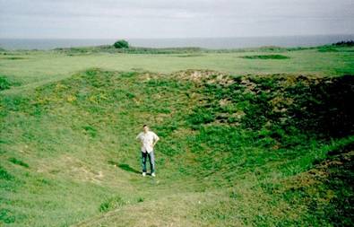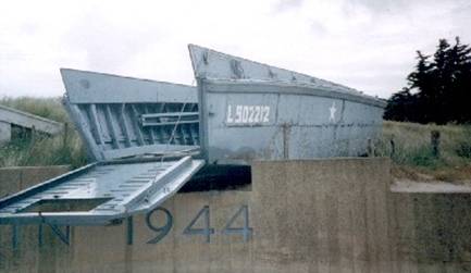 Higgins Boat One of many bomb and naval gun craters at Point du Hoc