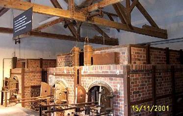 At Dachau, prisoners were hung here on these rafters before being cremated in these ovens. Both the 42d and 45th Infantry Divisions took part in its liberation. Competition was so fierce between the two divisions, that at one point a soldier from the 42d drew a pistol on a soldier from the 45th demanding to be the first to enter the camp.